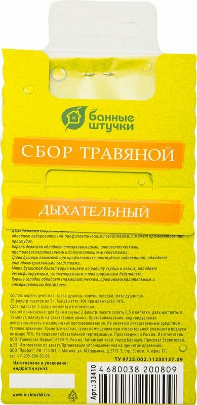 - Сбор травяной Дыхательный для бани и сауны (Банные штучки) обзор 33410