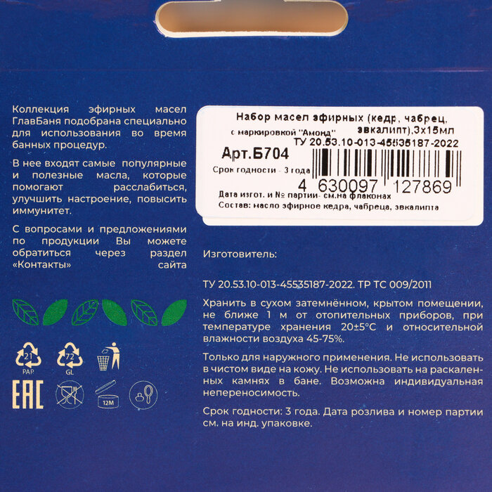Эфирные масла для бани ООО "Амонд"