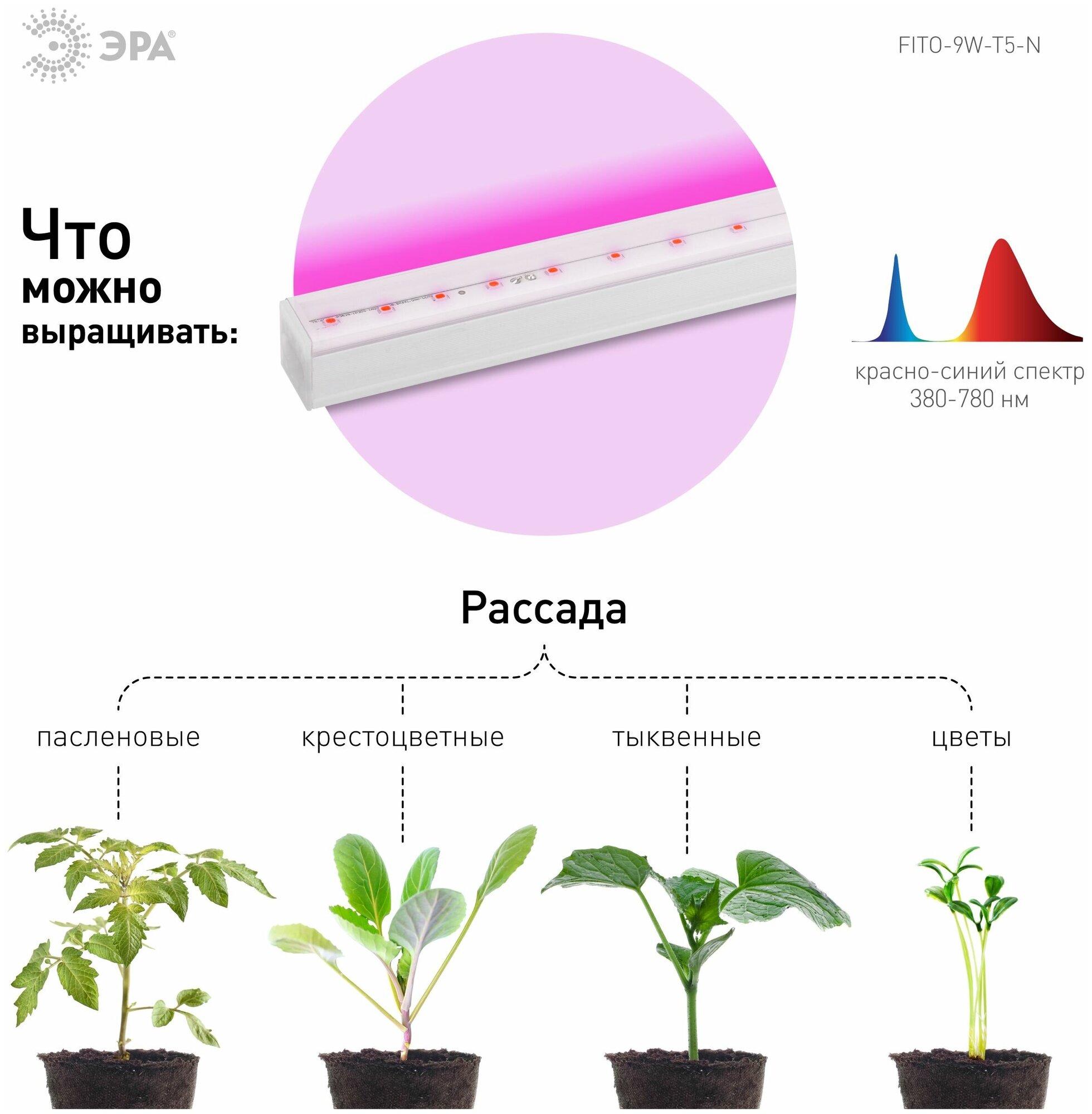Светильник для растений ЭРА светодиодный 9 Вт белый