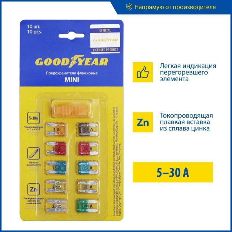 Предохранитель флажковый GOODYEAR мини 5-30а 10 шт (размер: MINI)