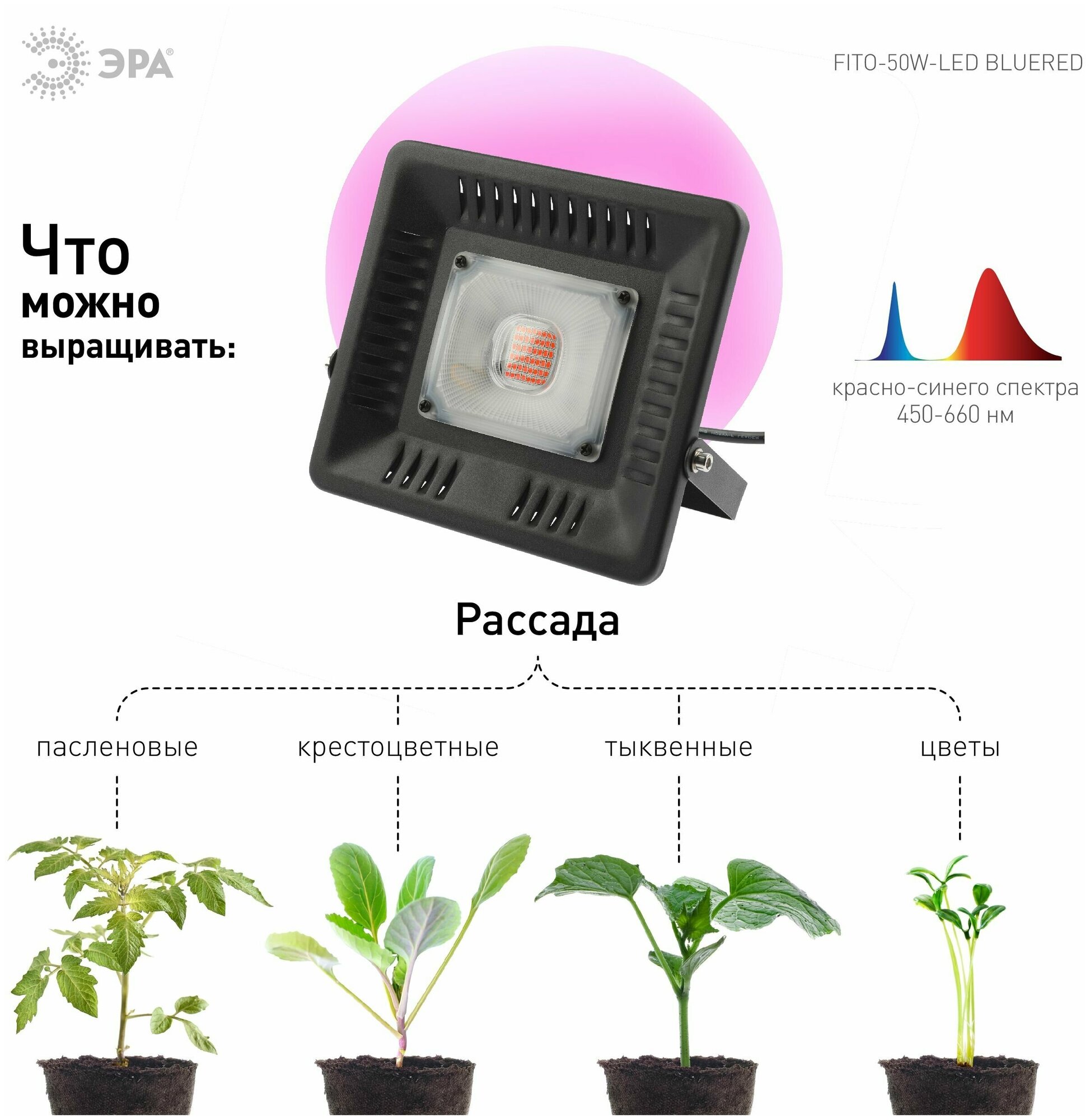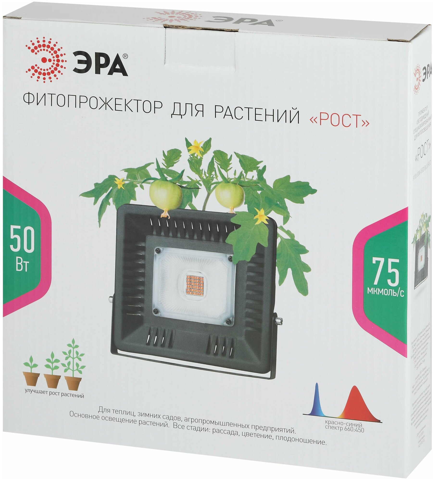 Прожектор для растений светодиодный 50 Вт черный 225х200х42 см ЭРА "РОСТ" FITO-50W-LED (черный)