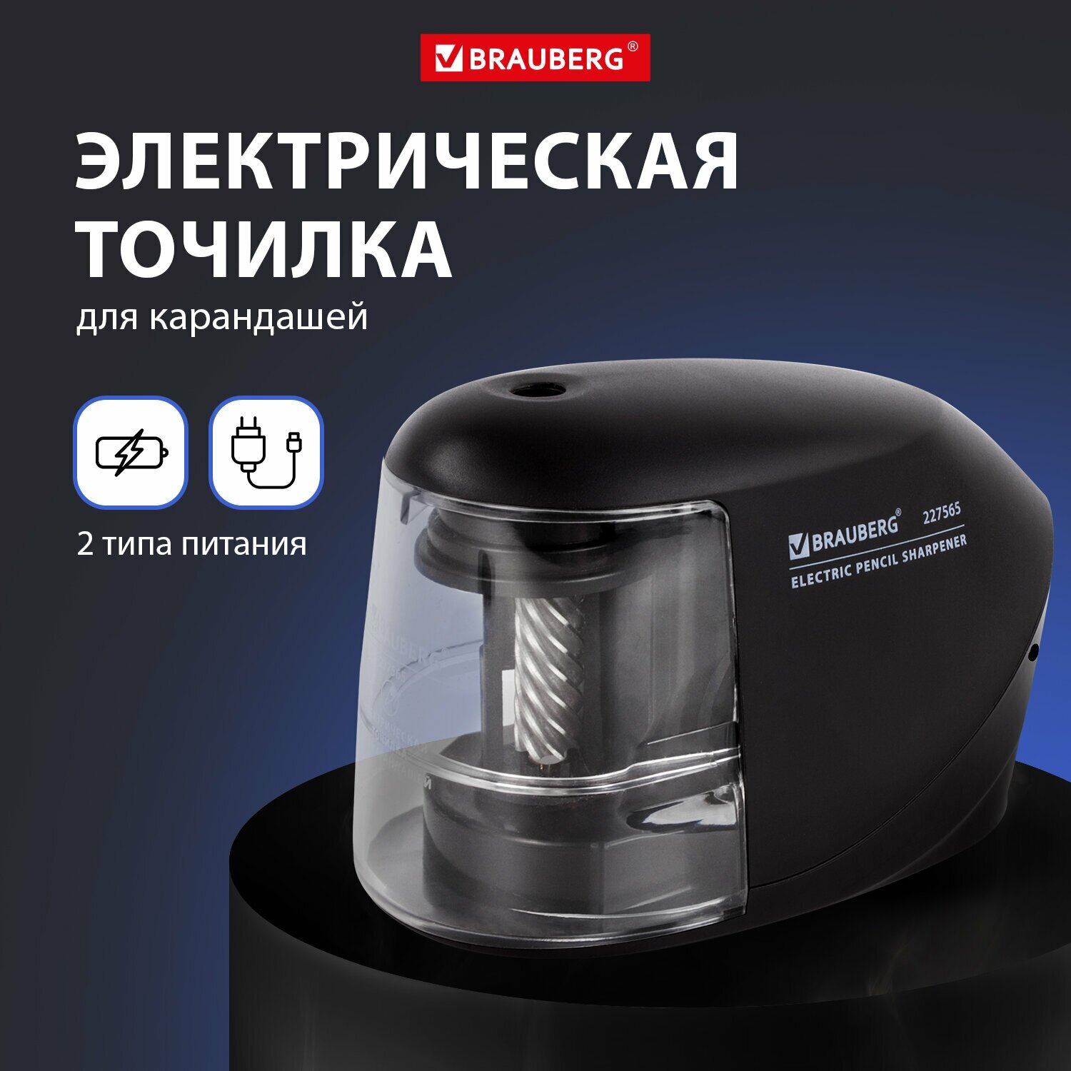 Точилка электрическая BRAUBERG 227565 питание 220 В или 4 батарейки АА