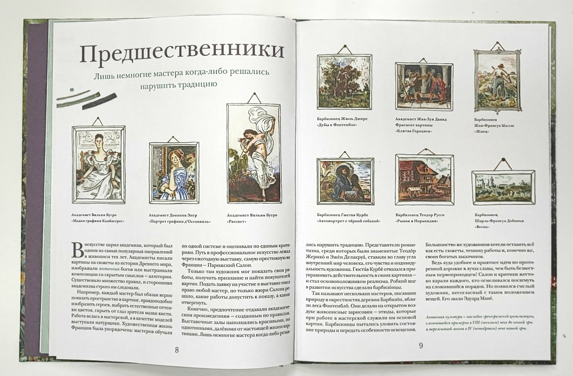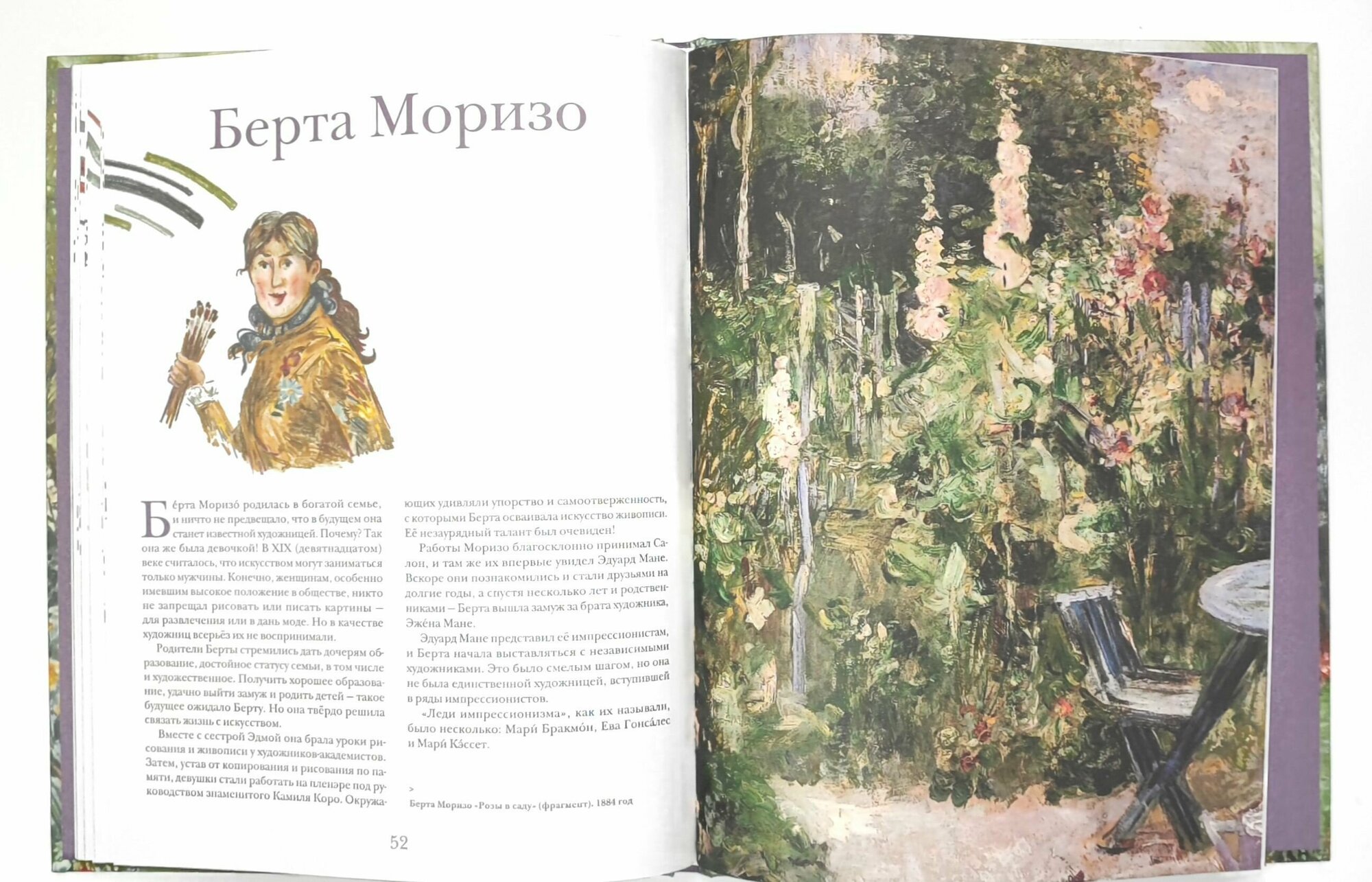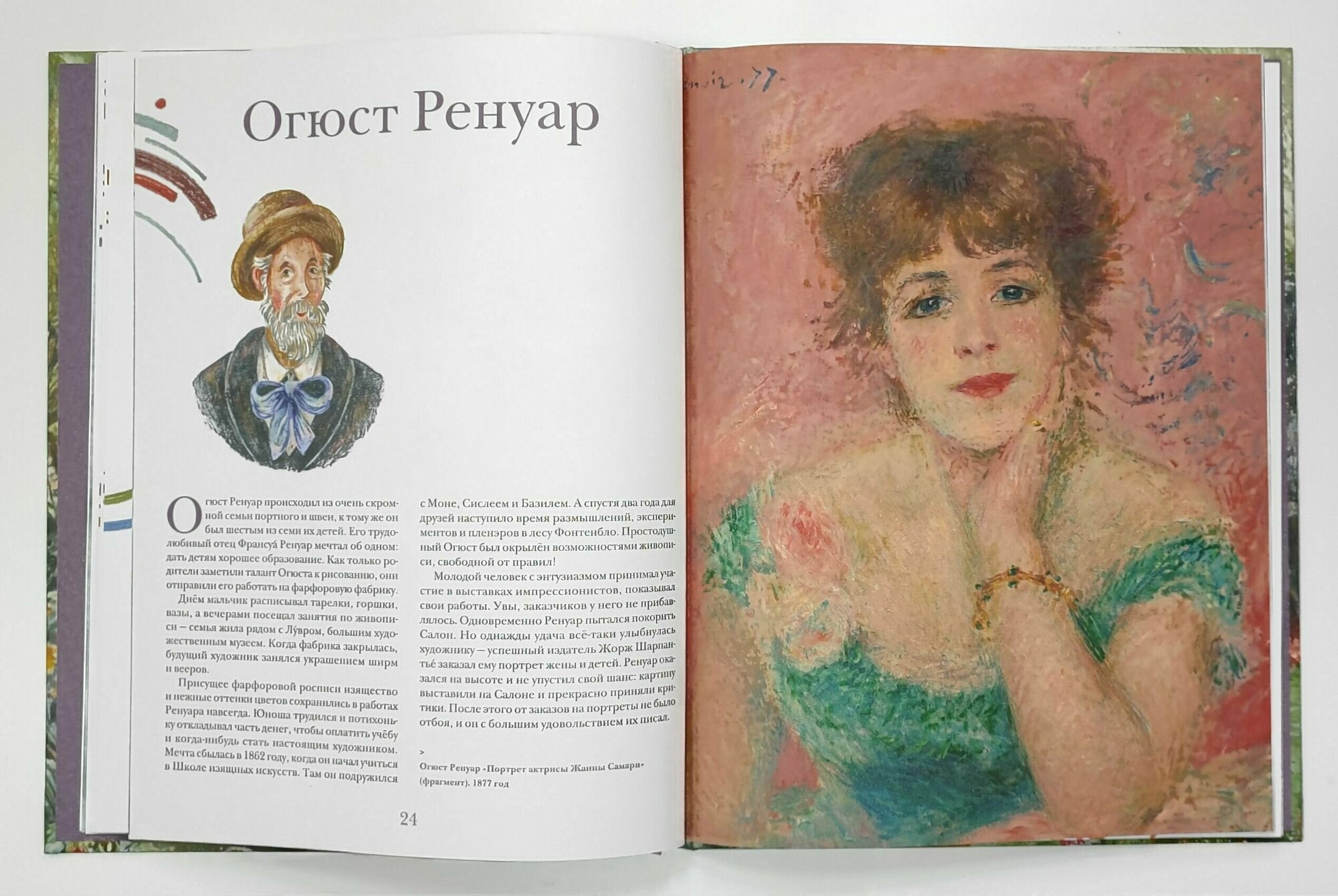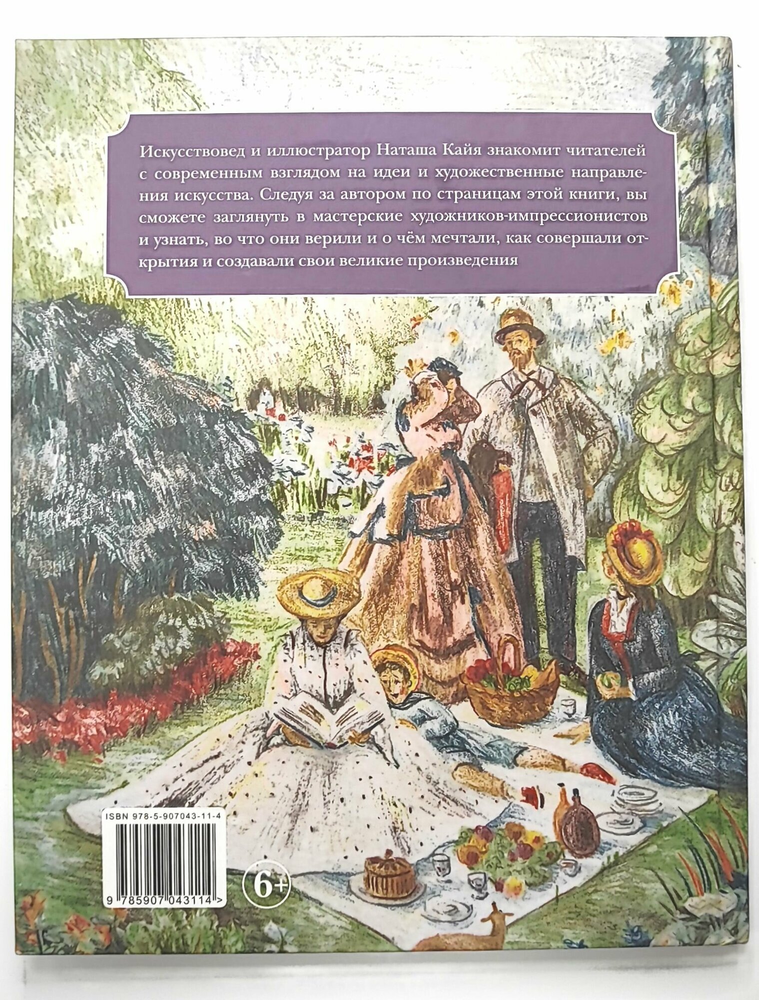 Автор рассказывает об искусстве импрессионистов доступным интересным языком. Информация не только о художниках и их работах, но и о бытовых и исторических факторах, способствующих появлению нового направления в искусстве. Автор Наташа Кайя является и автором иллюстраций, что делает повествование цельным. Книга для совместного чтения или для самостоятельного лет с 10.