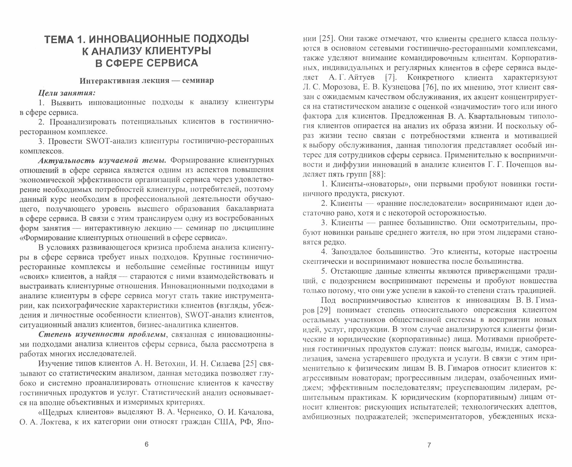 В учебном пособии представлены теоретические и практические вопросы по учебной дисциплине "Формирование клиентурных отношений в сфере сервиса". Даны подробные планы проведения занятий в виде интерактивной лекции-семинара, практических занятий. Данное пособие составлено на основе источниковедческого анализа литературы по формированию клиентурных отношений в сфере сервиса, материалов периодической печати, монографий, авторефератов. Обучающимся предложены подробные теоретические сведения по темам практических занятий, обозначены задания для их выполнения. Тематика вопросов нацеливает обучающихся на активизацию мыслительной деятельности, самостоятельную работу, осознанное - проектное отношение к формированию клиентурных отношений в индустрии гостеприимства.