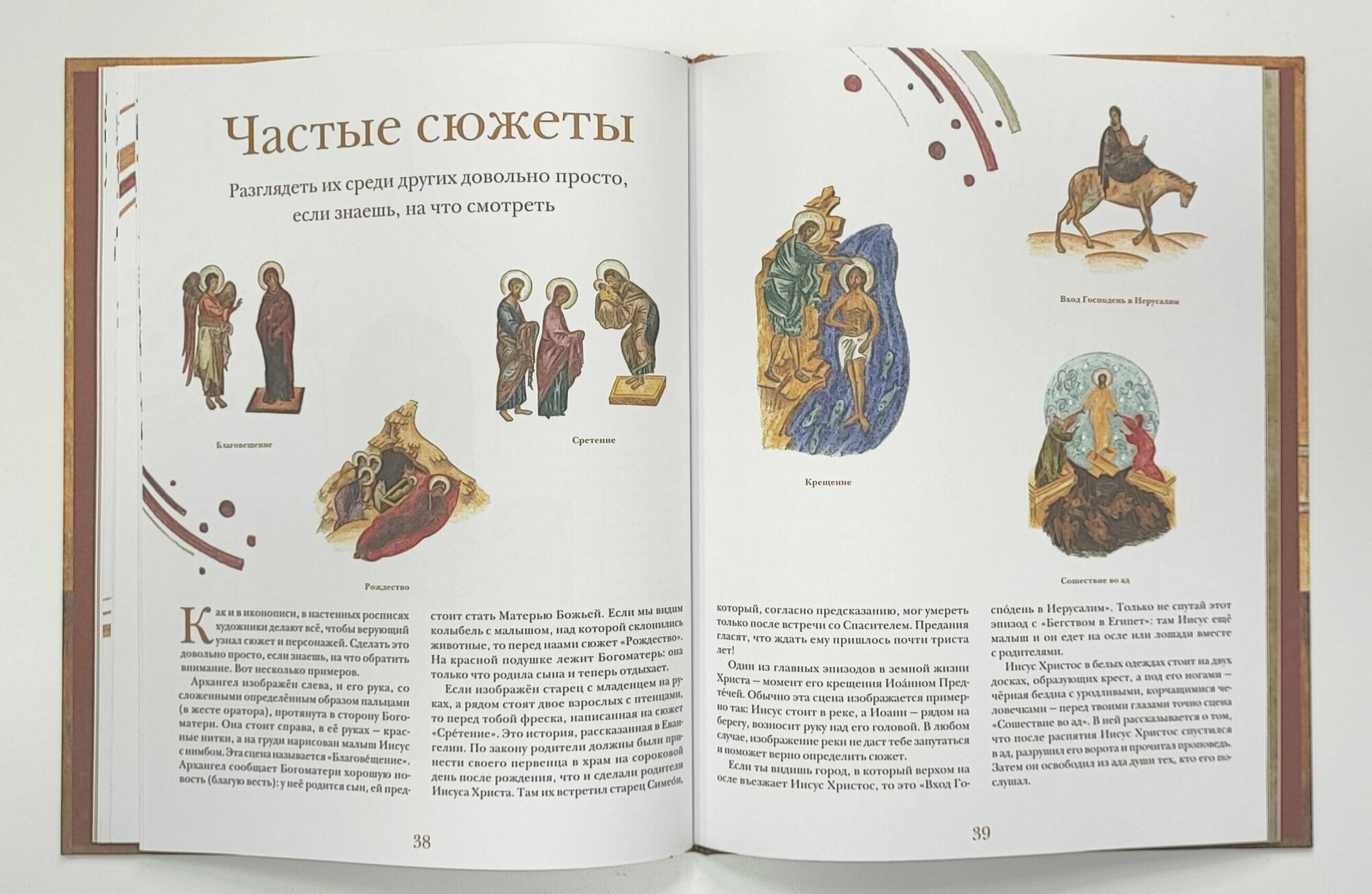 Речь идёт не только об иконописи, как можно было бы предположить по обложке. Подробно разбирается архитектура, резьба по камню, храмовая роспись, иконопись, мозаика, скульптура и деревянная скульптура, книги, прикладное искусство, ремесла.