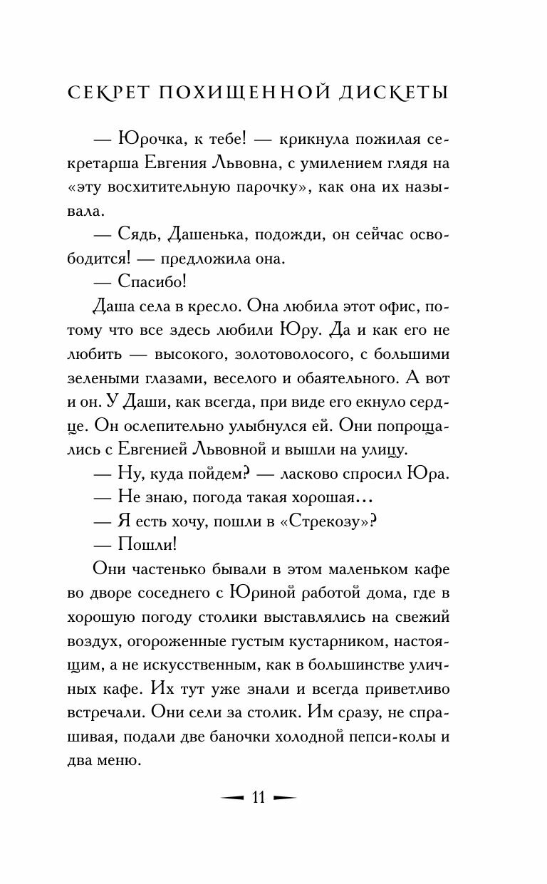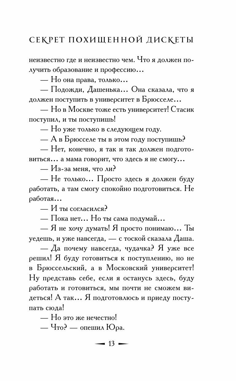 Читать всем!Прочитала недавно книгу Екатерины Вильмонт «Секрет похищенной дискеты». Всем советую почитать произведения этого замечательного автора, все её книги очень интересные и завораживающие, классно переживать все чувства и неудачи вместе с героями) Очень увлекательный сюжет, не могла оторваться! прочитайте эту книгу, вы об этом не пожалеете, а ваша жизнь изменится в лучшую сторону=)