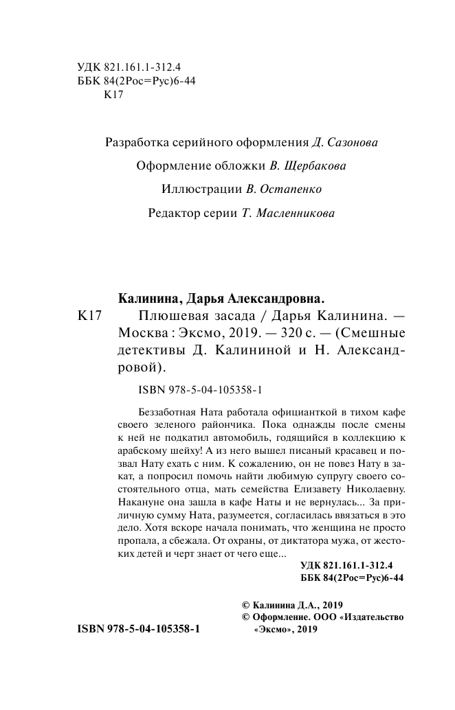 Книга: Плюшевая засада (Дарья Александровна Калинина); Эксмо, 2019