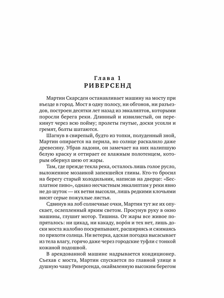 Хорошая книга. Поступки людей и эмоции, которые толкают их на эти поступки, приближены к реальным. Даже Харли Снауч – казалось бы, готовый шаблон из «мыльной оперы», – преподнес сюрприз. Из познавательного: кухня современной журналистики и суровая природа Австралии, но не во вред динамичности сюжета. Депрессивное впечатление «везде-то живут люди и везде они живут плохо» смягчается долгожданным дождем.