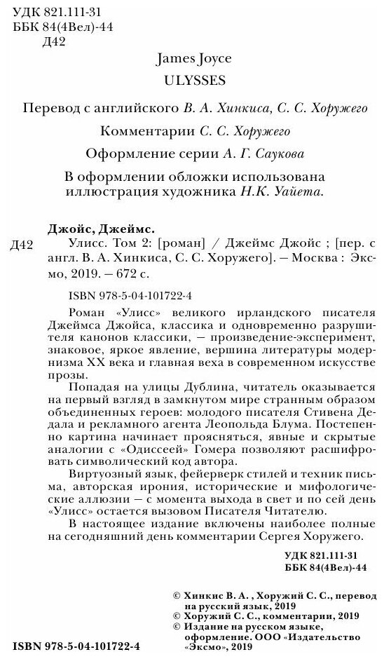 Книга: Улисс. Том 2 (Джеймс Джойс); Эксмо, Редакция 1, 2019