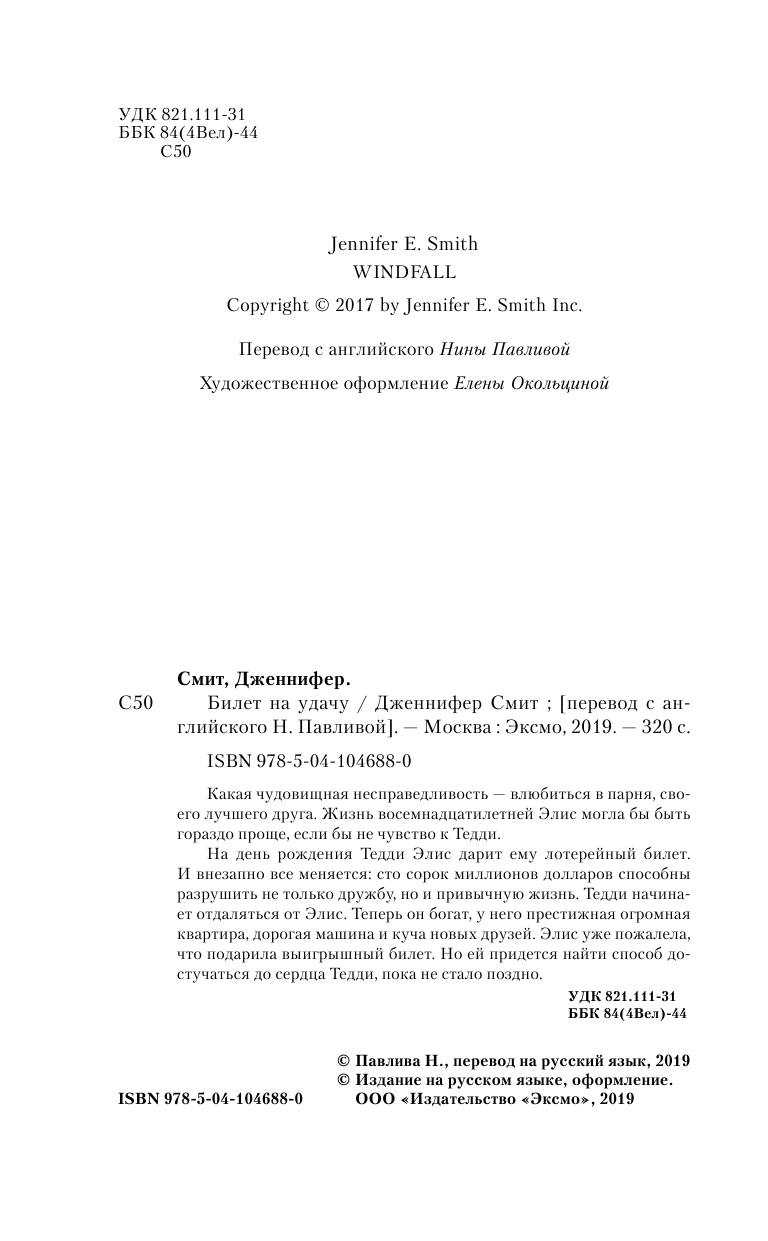 Книга: Билет на удачу (Дженнифер Е. Смит); Like Book, Редакция 1, 2019