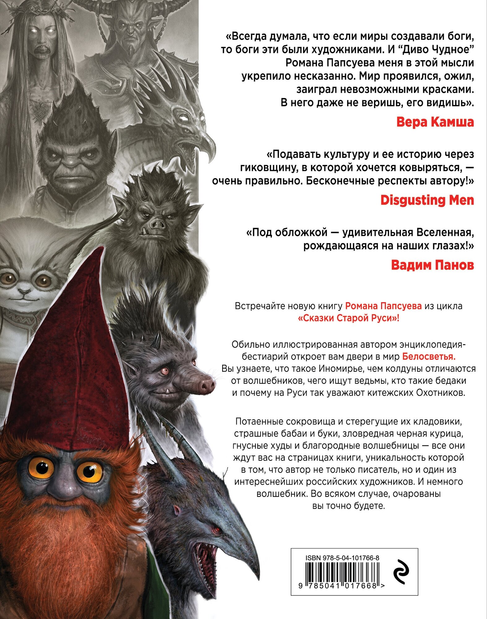 Итак, встречайте. Роман Папсуев, "Диво Чудное", том первый. Обильно иллюстрированная автором энциклопедия-бестиарий откроет вам двери в мир Белосветья. Вы узнаете, что такое Иномирье, чем колдуны отличаются от волшебников, чего ищут ведьмы, кто такие бедаки и почему на Руси так уважают китежских Охотников.