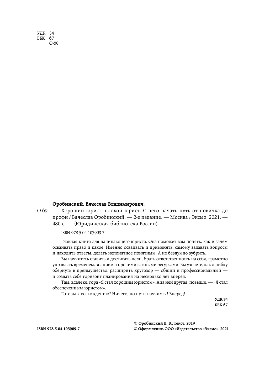 Хороший юрист плохой юрист. С чего начать путь от новичка до профи (Оробинский Вячеслав Владимирович); ООО "Издательство "Эксмо", 2019
