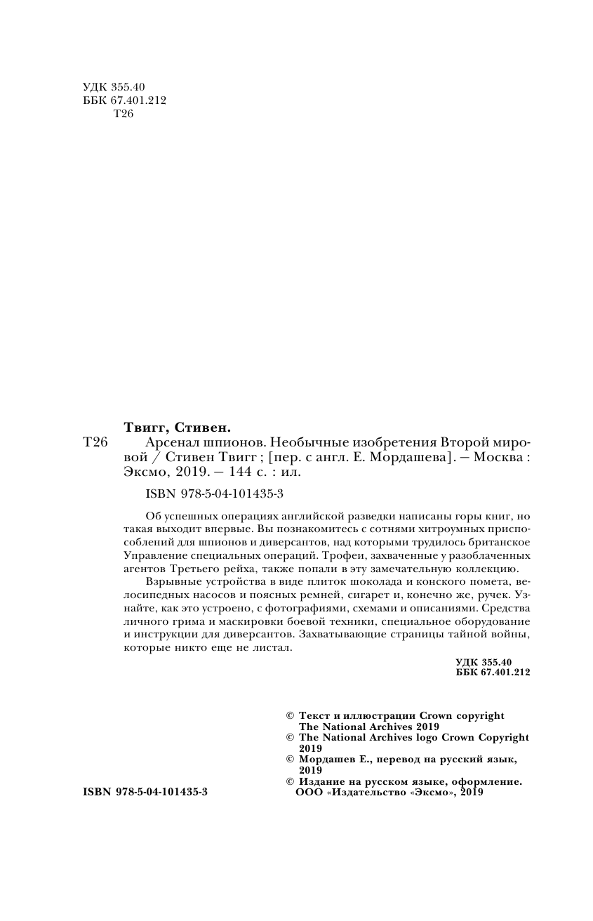 Арсенал шпионов. Необычные изобретения Второй мировой (Стивен Твигг); Эксмо, Редакция 1, 2019