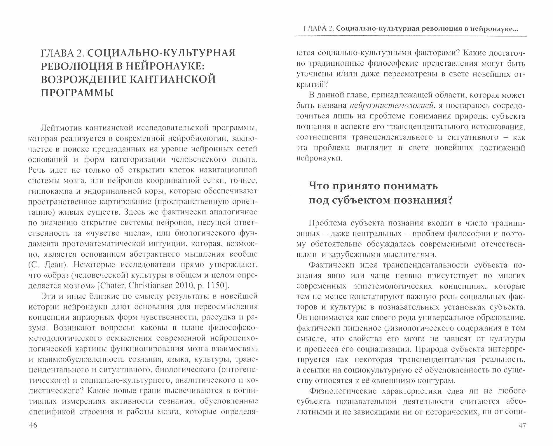 Современная когнитивная наука претендует на то, чтобы стать символом 21 столетия, подобно тому как атомная физика явилась символом первой половины и середины 20 века, а информационные технологии - символом его последних десятилетий. В настоящей книге показывается, что современные когнитивные исследования (особенно в той части, которая принадлежит нейронауке) ведутся в контексте кантианской программы: мозг, культура и социум оказываются пронизанными системой обратных связей в том смысле, что культура и социум в целом вовлечены в процесс формирования мозга и его познавательного потенциала, а в свою очередь мозг во многом определяет контуры и культуры, и социума.