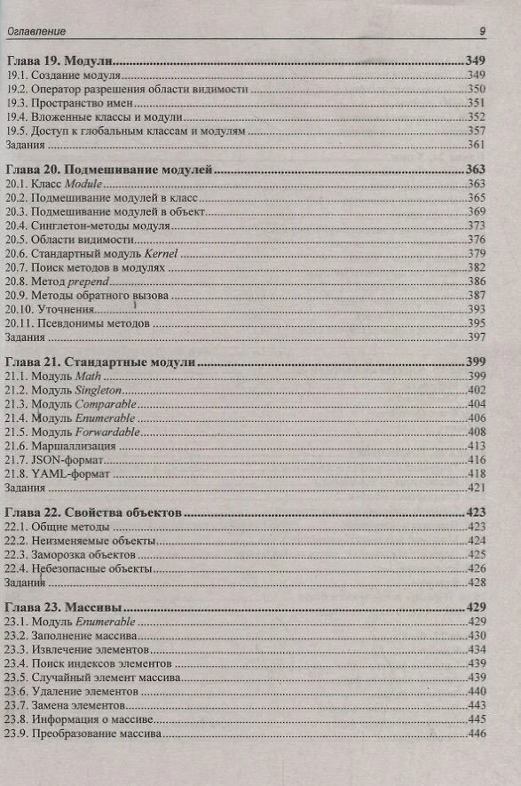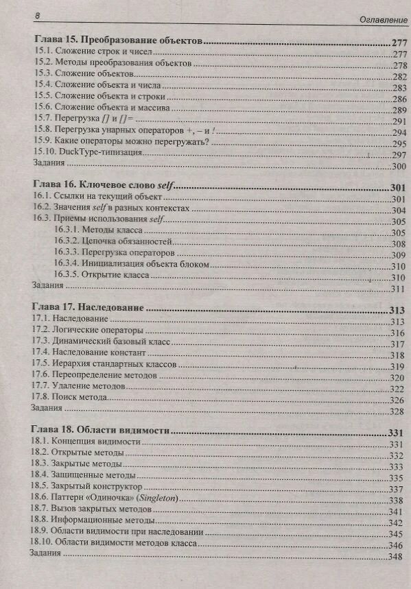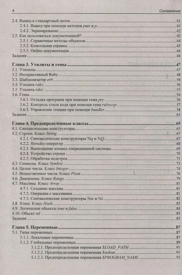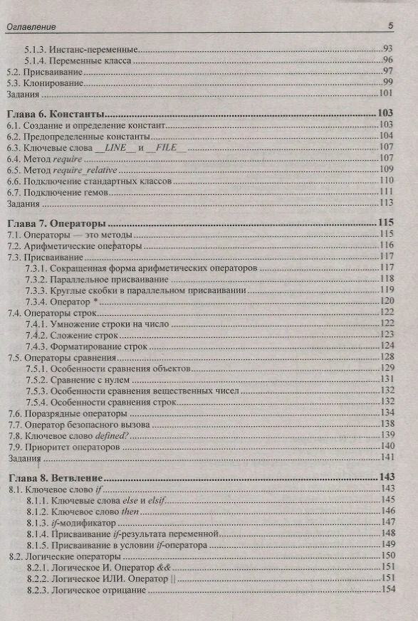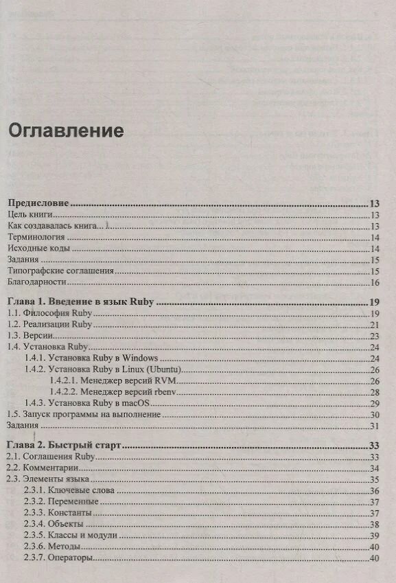 Язык Ruby излагается последовательно от простого к сложному. Описываются интерпретатор Ruby, утилиты, детально рассматривается современная Ruby-эко-система, работа со стандартной и сторонними библиотеками Дан разбор синтаксических конструкций: операторов, переменных, констант, конструкций ветвления и циклов, блоков и итераторов.