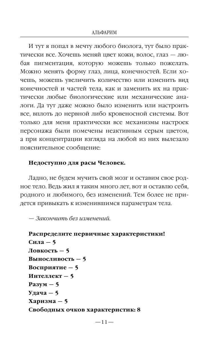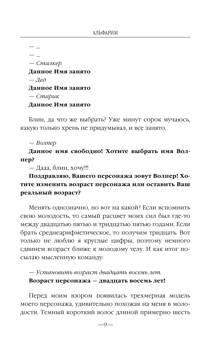 Не знаю кто скрывается за ником РосПер, но эта книга не произвела сильного впечатления. Читать можно, но если вы ещё не познакомились с "Призрачным сервером" Ливадного, "Мёртвым вором" Корнева, то выскажу предположение, что тему, начатую кажется ещё Лукьяненко в "Лабиринте отражений", с игроком застрявшим в виртуальной реальности, совсем не обязательно начинать с "Альфарим". Впрочем, повторюсь - читать книгу можно, отсутствие какого либо негатива в реакциях, в ответ на прочитанное, уже и большой плюс и достоинство. Книга по уровню исполнения напомнила некоторые тексты Каменистого, однако, предположу, что она всё же уступает "Самому странному нубу".