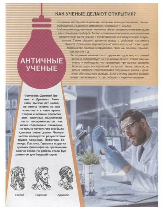 Эта удивительная книга поможет тебе проверить, хорошо ли ты знаешь мир, в котором живёшь. Здесь собрано множество разносторонних фактов из различных областей знаний. В занимательной и доступной форме книга рассказывает о планете Земля, космосе, животных и растениях, невероятных изобретениях, географических открытиях и удивительной взаимосвязи между всеми известными человечеству науками. Изучив эту энциклопедию, ты узнаешь, сколько лет самым старым деревьям, как движения воды и воздуха превращаются в свет и тепло, какая цифра в математике казалась древним магической, почему мы не видим под ногами самый распространенный в мире металл и многое другое. А еще ты прикоснешься к таинствам науки вместе с лучшими умами человечества, размышляющими над созданием машины времени, вечного двигателя и источников возобновляемой энергии. А представить всё это тебе поможет множество поясняющих иллюстраций.