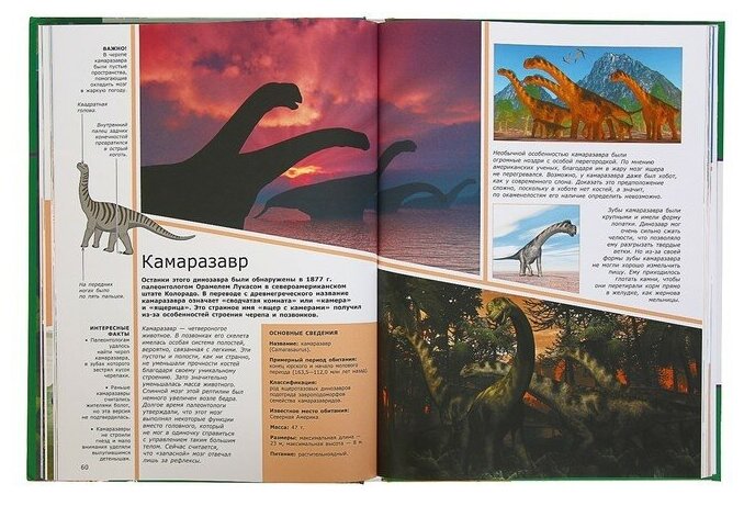 Отличная настольная книга для маленьких любителей динозавров. Иллюстрации приятные глазу, ребёнок рассматривает с большим удовольствием, информация преподнесена кратко, но её вполне достаточно, чтобы оценить весь масштаб этих гигантских доисторических ящеров. Прекрасно подойдёт как подарок, очень качественная печать, правда книга очень большая и тяжёлая, это стоит иметь ввиду, не на любую полку встанет.
