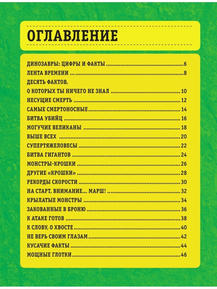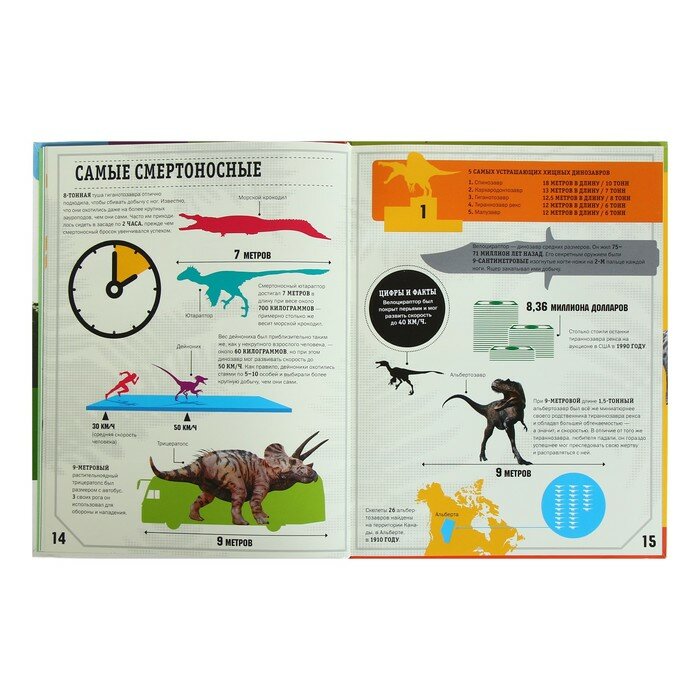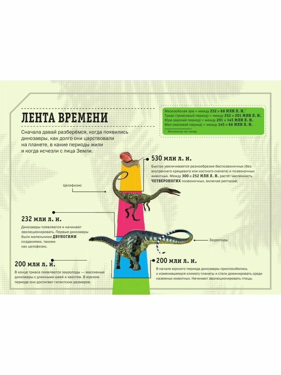 Эта книга - настоящая находка для будущего динозавроведа: здесь множество удивительных фактов о динозаврах! Большие и маленькие, знаменитые и почти неизвестные, воинственные и совершенно безобидные - и у каждого свои особенности и предпочтения. Все факты в книге интересно проиллюстрированы, причём для наглядности используются сравнения с мячом, карандашом, школьной линейкой и другими самыми обычными предметами, знакомыми каждому ребёнку.