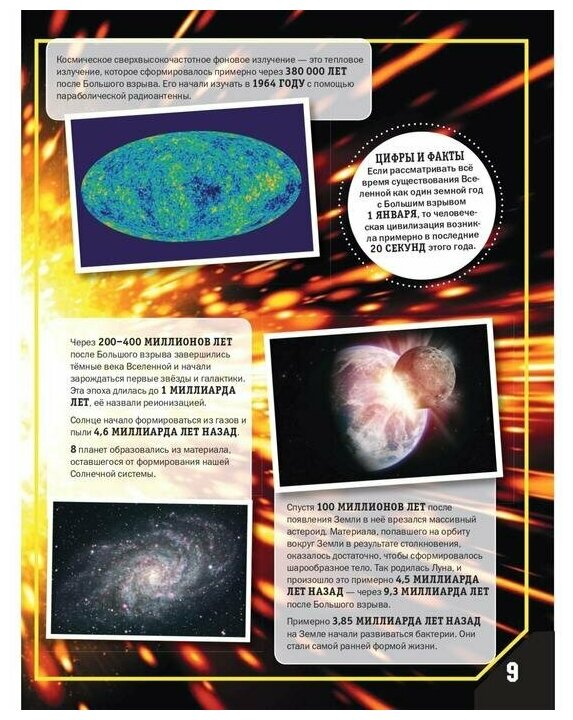 Эта книга создана для тех, кто хочет знать всё о космическом пространстве! Галактики, звёзды и планеты; астероиды, метеориты и кометы; телескопы, космические аппараты и скафандры - чего здесь только нет! И все факты интересно проиллюстрированы. Причём для наглядности используются сравнения тел и объектов как между собой, так и с самыми обычными предметами, знакомыми каждому ребёнку: лампой, автомобилем, футбольным полем и даже пиццей.