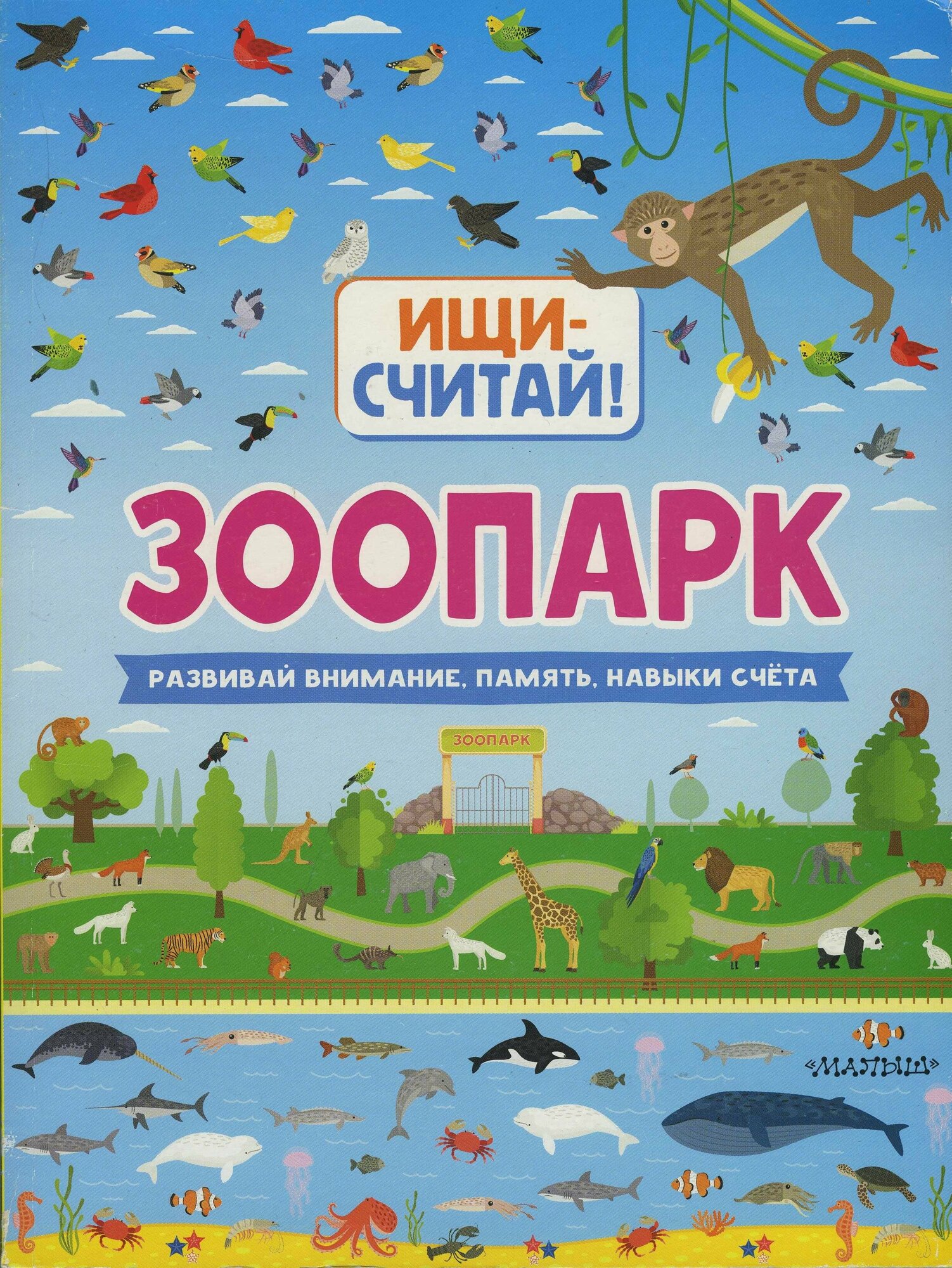 Эта книга - настоящий зоопарк - здесь ты увидишь животных Африки, Арктики, Австралии, Северной и Южной Америки, жуков, тропических бабочек, экзотических птиц, обезьянник и даже океанариум.