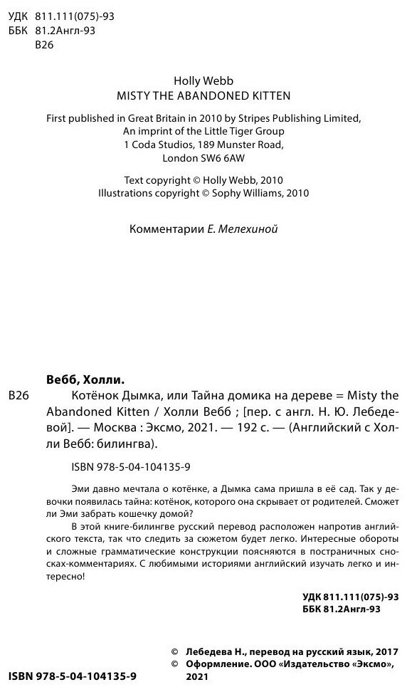 На сегодняшний день товар «Книга: Котенок Дымка или Тайна домика на дереве (Холли Вебб); Эксмо, 2010» можно купить с кешбеком в 2 магазинах: ЛитРес, Читай-город