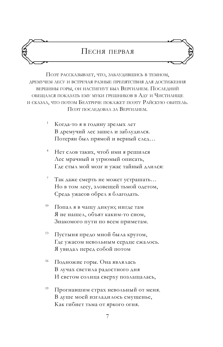 по содержанию, кроме произведений "Ад", "Чистилище" и "Рай", в данный том входят комментарии к каждой песне.