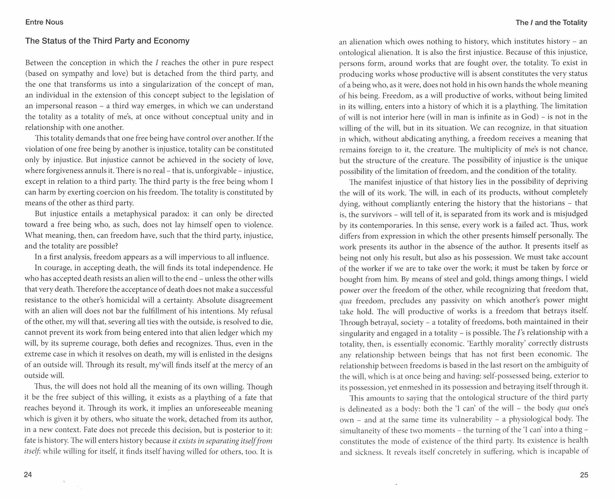 Entre Nous is a major collection of essays representing the culmination of Emmanuel Levinas's philosophy. Bringing together his most important work in a single volume the book reveals the development of his thought over nearly forty years of committed inquiry. Here he engages with issues of suffering, love, religion, culture, justice, human rights, and legal theory and each issue is discussed in relation to the ethical dimensions of otherness. Like much of his work this text bridges several major gaps in the evolution of Continental philosophy, between modernism and postmodernism, phenomenology and poststructuralism, ethics and ontology.