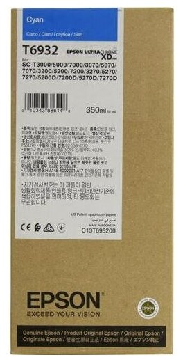 Струйный картридж Epson T6932 подходит для аппаратов Epson SureColor SC-T3000 / SC-T5000 / SC-T7000 Линейка этих аппаратов, как правило используется в домашних условиях для качественной и недорогой монохромной и цветной печати. Фотографии, цветные иллюстрации, черно-белые или цветные изображения - со всеми подобными задачами эти принтеры справляются безупречно. Относительно невысокая стоимость принтеров и расходных материалов к ним является дополнительным преимуществом.