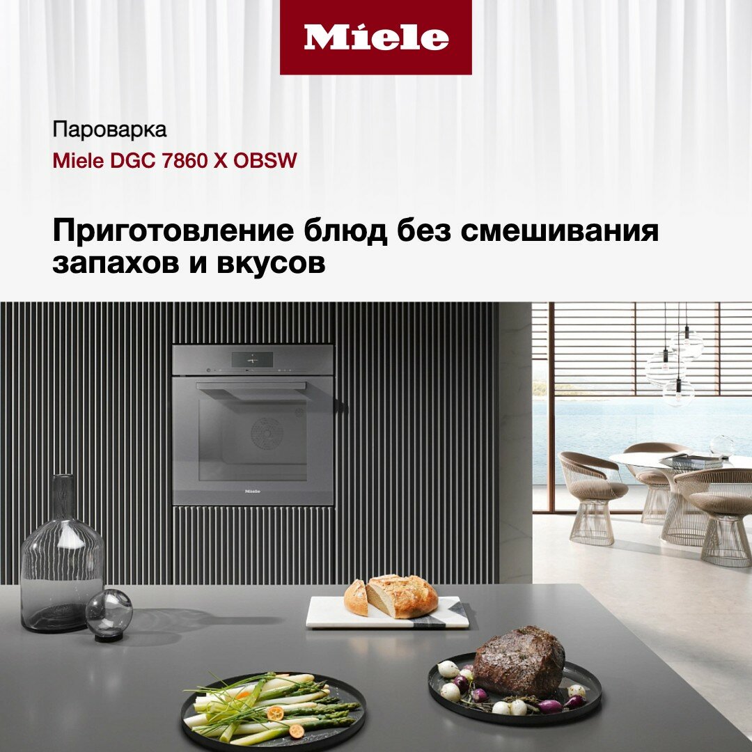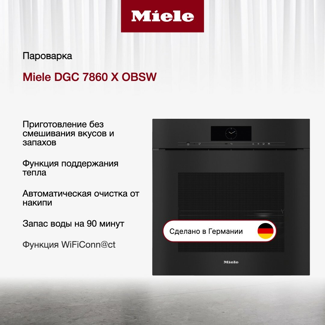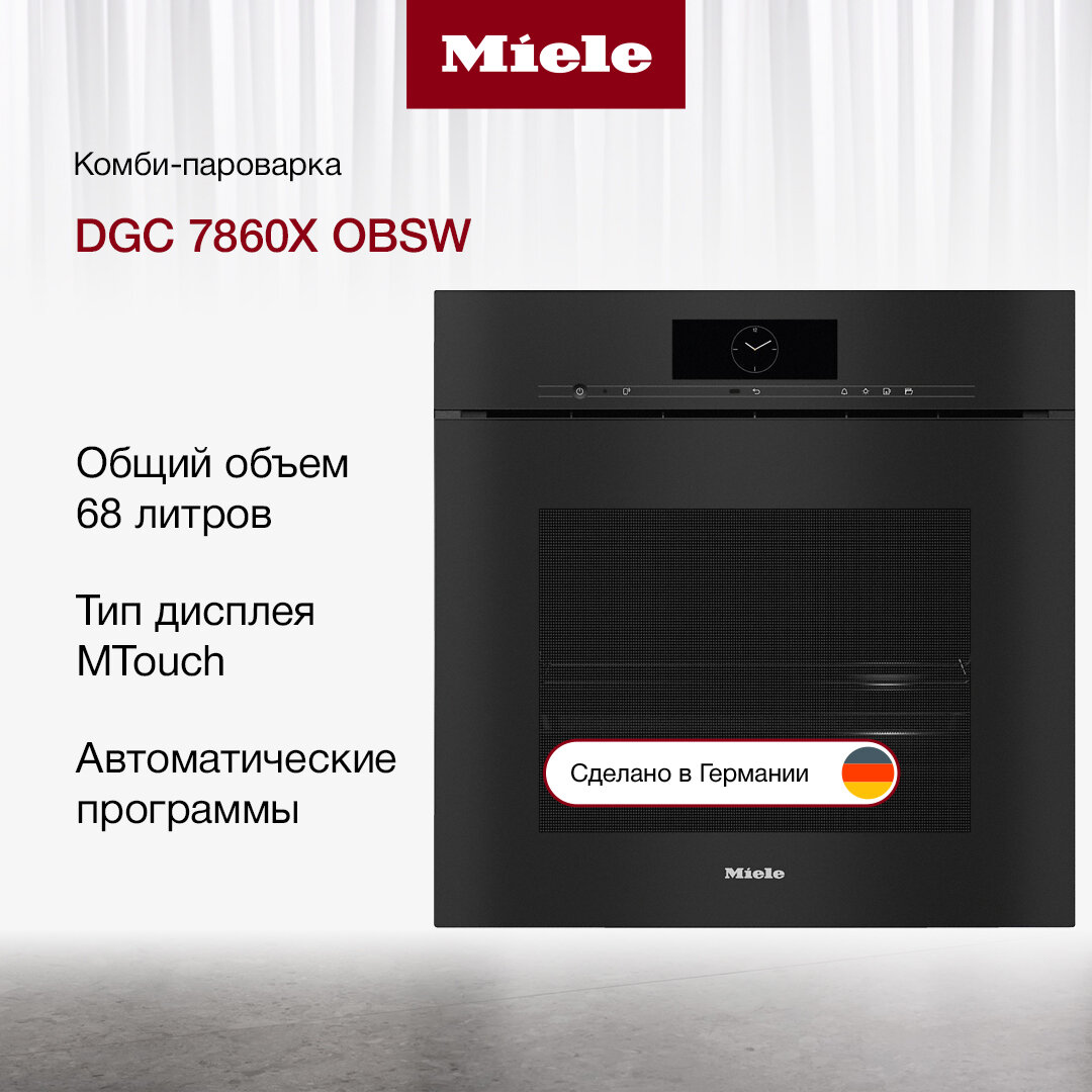 Комби-пароварка Miele DGC 7860X OBSW - это уникальное устройство, которое совмещает в себе функции пароварки и духовки. Благодаря этому, вы сможете приготовить разнообразные блюда, сохраняя их вкус и аромат.Устройство оснащено интуитивно понятным интерфейсом, что делает его простым в использовании даже для начинающих пользователей.Использование комби-пароварки позволяет снизить потребление электричества и воды, что способствует экономии ресурсов и уменьшению воздействия на окружающую среду.Благодаря использованию пара, комби-пароварка сохраняет все питательные вещества и витамины в продуктах, что делает блюда более полезными и вкусными.Комби-пароварка выполнена в современном дизайне, что позволяет ей органично вписаться в любой интерьер кухни.Комби-пароварка изготовлена из высококачественных материалов, что гарантирует ее надежность и долговечность.Комби-пароварка оснащена всеми необходимыми функциями безопасности, которые обеспечивают комфортное использование и предотвращают возможные травмы.При обнаружении движения включается подсветка, при обнаружении движения включается дисплей, при обнаружении движения включается звуковой сигнал, распознавание фронтов шкафа.Комби-пароварка работает в системе Умный дом, имеет экосистему Miele@home и протокол связи Wi-Fi.Устройство оснащено сенсорным дисплеем, телескопическими направляющими, доводчиком SoftClose / SoftOpen и механизмом Touch2Open.Комби-пароварка имеет 20 автоматических программ, откидную дверцу духовки, гидролизную очистку духовки, электрическую духовку, конвекцию, гриль и множество режимов работы.Максимальная температура в духовке составляет 255 градусов.Устройство имеет защитное отключение и систему защиты от детей.Комби-пароварка Miele DGC 7860X OBSW - это современное и функциональное устройство, которое станет незаменимым помощником на вашей кухне.