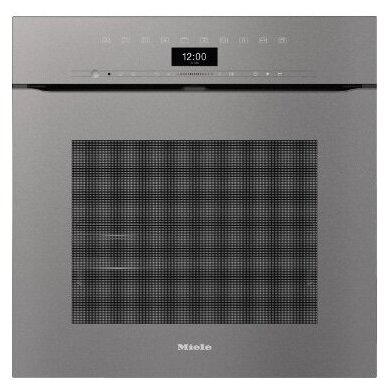 Духовой шкаф Miele H 7464 BP GRGR привлекательного цвета «графитовый серый» обладает широким спектром возможностей. Одна из них — дистанционное управление через мобильное приложение Miele@mobile. Вы через сеть WiFiConn@ct управляете настройками, а с помощью функции MobileControl сможете следить за ходом выполнения поставленных задач. Если у вас несколько единиц техники от Миле, то вы можете их добавить в систему «умный дом» Miele@home. Они начнут взаимодействовать друг с другом так, чтобы вы получили максимальный комфорт. Основные сведения Данная духовка создана для самых оригинальных блюд. С её помощью можно жарить на гриле, выпекать сложные неоднородные блюда, томить, размораживать, тушить, а также готовить с добавлением пара. Автоматика жарения самостоятельно настроит работу устройства так, чтобы вы получили румяное и сочное мясо. Особенности Предустановленные программы предлагают множество рецептов с уже заготовленными настройками. Выберите понравившийся и нажмите на соответствующую кнопку. Если у вас есть любимые рецепты, то вы сможете внести их в электронное меню. Так параметры сохранятся в памяти прибора. Необычная опция TasteControl снижает температуру внутри после завершения приготовления. Так блюдо не пересушится из-за ещё неостывшей рабочей камеры. За гигиену Миле H 7464 BP GRGR отвечает функция пиролиза. Она разогревает духовку свыше 400 градусов, из-за чего все загрязнения превращаются в пепел. В это время дверца блокируется.