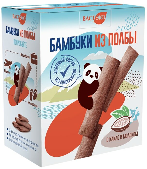 Бамбуки-это легкие хрустящие палочки из цельнозерновой полбяной муки, внутри нежная начинка из натурального какао. Изготавливаются 100% из натуральных продуктов без дрожжей и яиц.