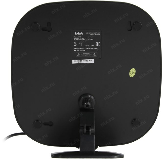 Антенна телевизионная BBK - активная, с встроенным усилителем. Корпус антенны выполнен в черном цвете из нержавеющей стали и пластика. Она предназначена для приема цифрового сигнала и может быть установлена настенно в комнате.