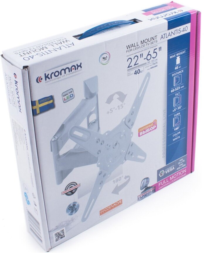 Kromax послужит прекрасным выбором для техники размером 22-65 дюймов. Благодаря надежной конструкции модель выдержит нагрузку до 40 кг.