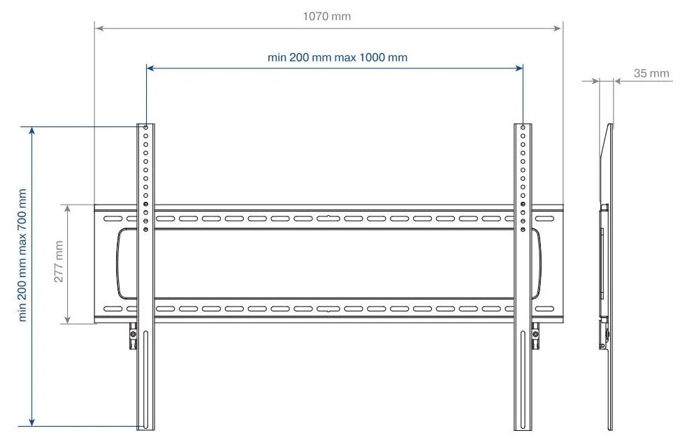 | Дополнительно | Универсальная система крепления по горизонтали от 200 мм до 1000 мм, по вертикали от 200 мм до 700 мм., , Широкое настенное основание с увеличенными размерами, для равномерно распределение нагрузки на кронштейн., , Мощная стальная конструкция с толщиной м |
