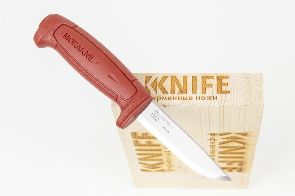 Нож туристический Morakniv с фиксированным клинком обладает высокой прочностью, позволяет легко разрезать различные по плотности материалы. В основе лежит качественная углеродистая сталь. Подойдет для охоты, рыбалки и туризма. Рукоять ножа выполнена из пластика и резины, имеет форму с гардой для защиты руки от соскальзывания на лезвие.