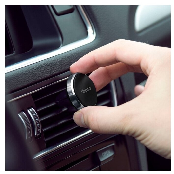 Компактный удачно дополняет интерьер любого автомобиля благодаря стильному минималистичному дизайну. С ним смартфон всегда под рукой и не мешает обзору. Устанавливайте и снимайте смартфон одним движением! Основу держателя составляют 4 мощных неодимовых магнита, способные удержать смартфон даже при экстремальной езде. Смартфон крепится к держателю с помощью металлической пластины, установленной на крышку смартфона (снаружи или изнутри) или на чехол (снаружи или изнутри). Благодаря различному расстоянию между лапками, легко монтируется на лопасти воздуховода любой толщины. Лапки имеют прорезиненное покрытие и не оставляют царапин. Защитная пленка, входящая в комплект, препятствует появлению следов при отклеивании пластины.