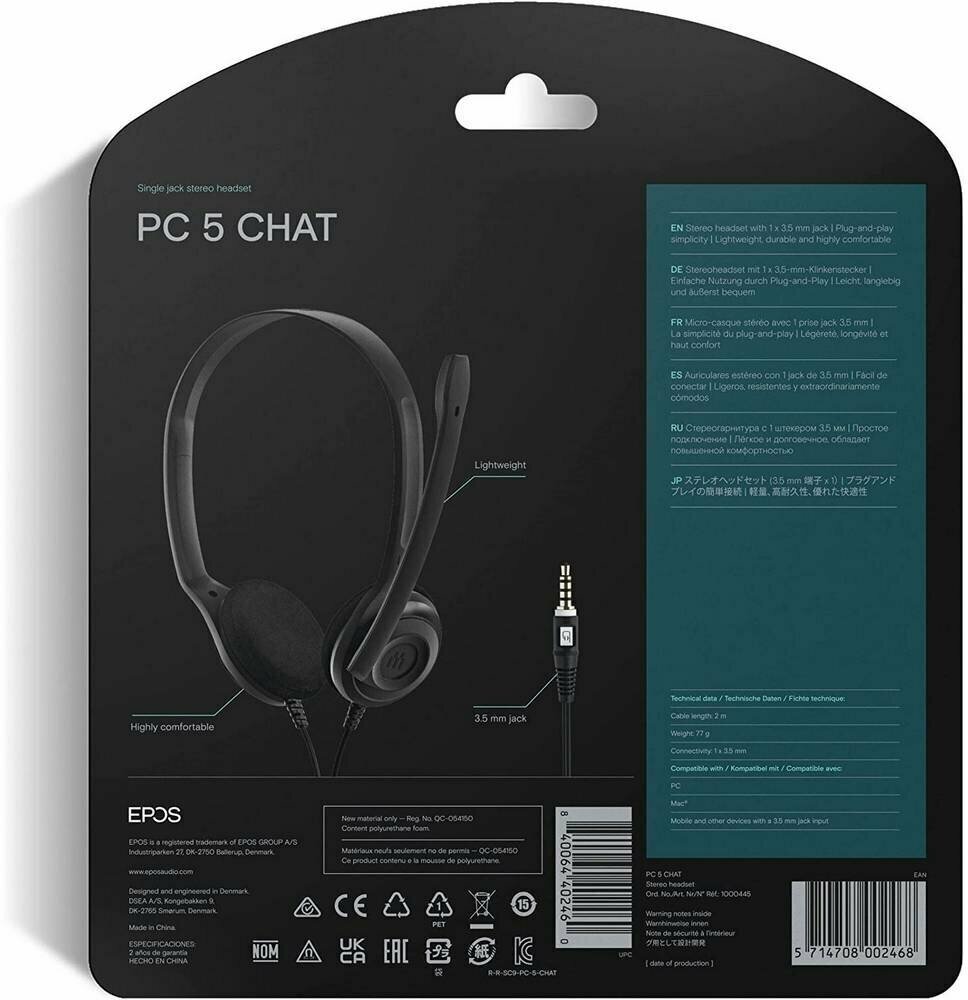 | Прочие особенности и свойства | Наслаждайся звуком Sennheiser, общаясь, обучаясь или играя через Интернет. PC 5 — потрясающе лёгкая и удобная настолько, что её можно носить часами, но при этом она создана для активного каждодневного пользования. Высококачественный шумоподавляющий микрофон гарантирует, что твой голос будет слышен чётко и ясно во время общения через Интернет., , Превосходная чёткость звука Sennheiser для использования в Интернет приложениях и играх., Облегчённая конструкция для обеспечения непревзойдённого комфорта., Прочная конструкция, способная выдержать активное ежедневное использования., Быстрое подключении к ноутбуку или ПК — просто вставь разъем. |