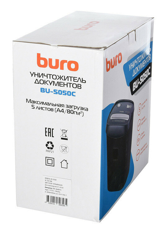Buro порежет на мелкие кусочки бумагу, пластиковые карты и оптические диски.