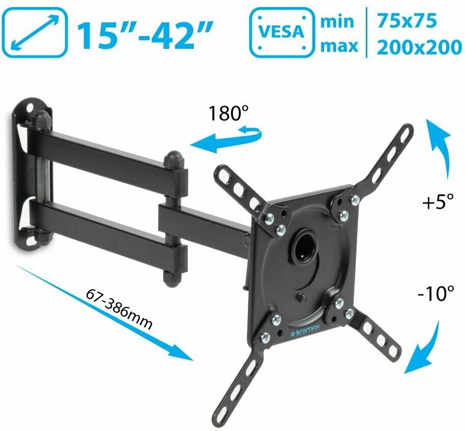 Kromax станет прекрасным решением для техники размером 15-42 дюймов. Благодаря надежной конструкции модель выдерживает до 20 кг.