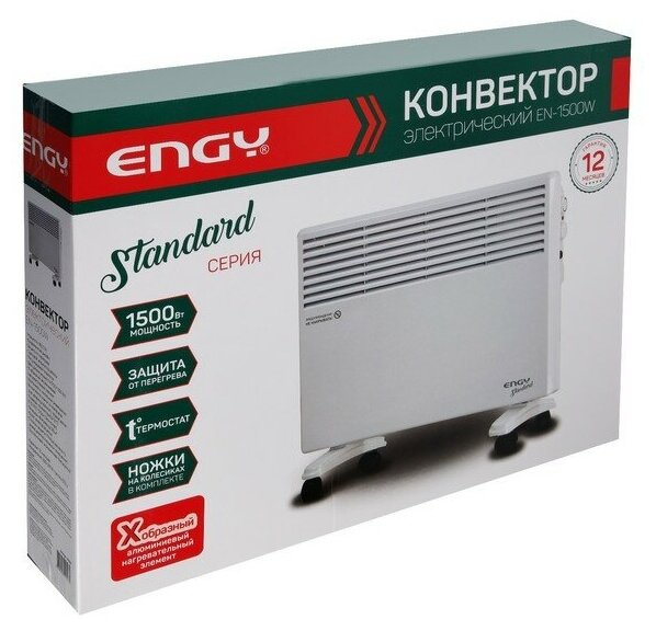 Конвектор ENGY – поможет создать комфортные условия! Безопасность конвектора обеспечивается функцией защиты от перегрева и опрокидывания, а влагозащита корпуса IP24 позволяет использовать его в ванной. Конвектор обладает небольшими габаритами и производит нагрев воздуха по принципу конвекции. Хорошая мощность обеспечивает быстрый обогрев помещения. Повышенную теплоотдачу во время обогрева помещений обеспечивает встроенный нагревательный элемент.