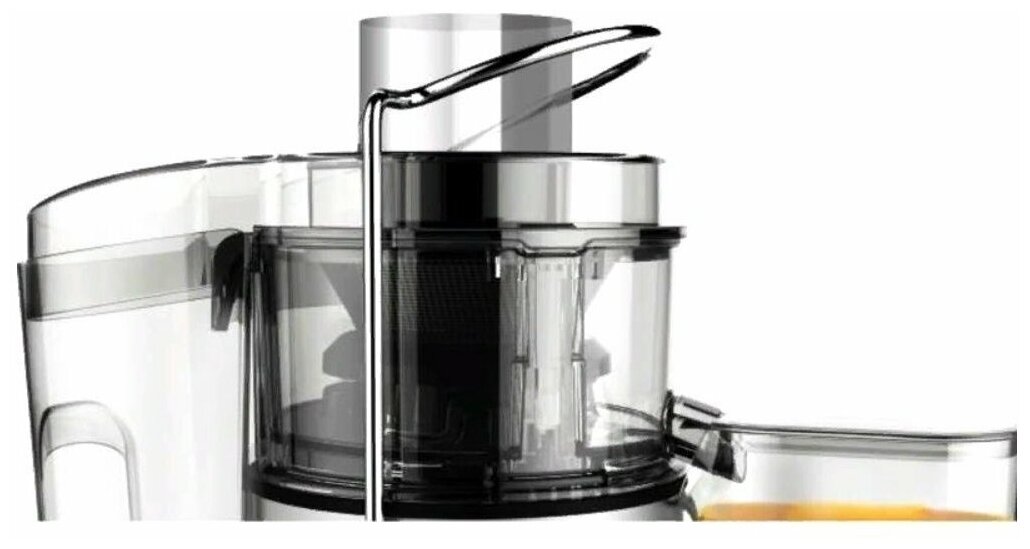 Удобный объем резервуара для мякоти в 1700 миллилитров позволяет собирать большое количество отходов, не прерывая процесса сокоизвлечения.