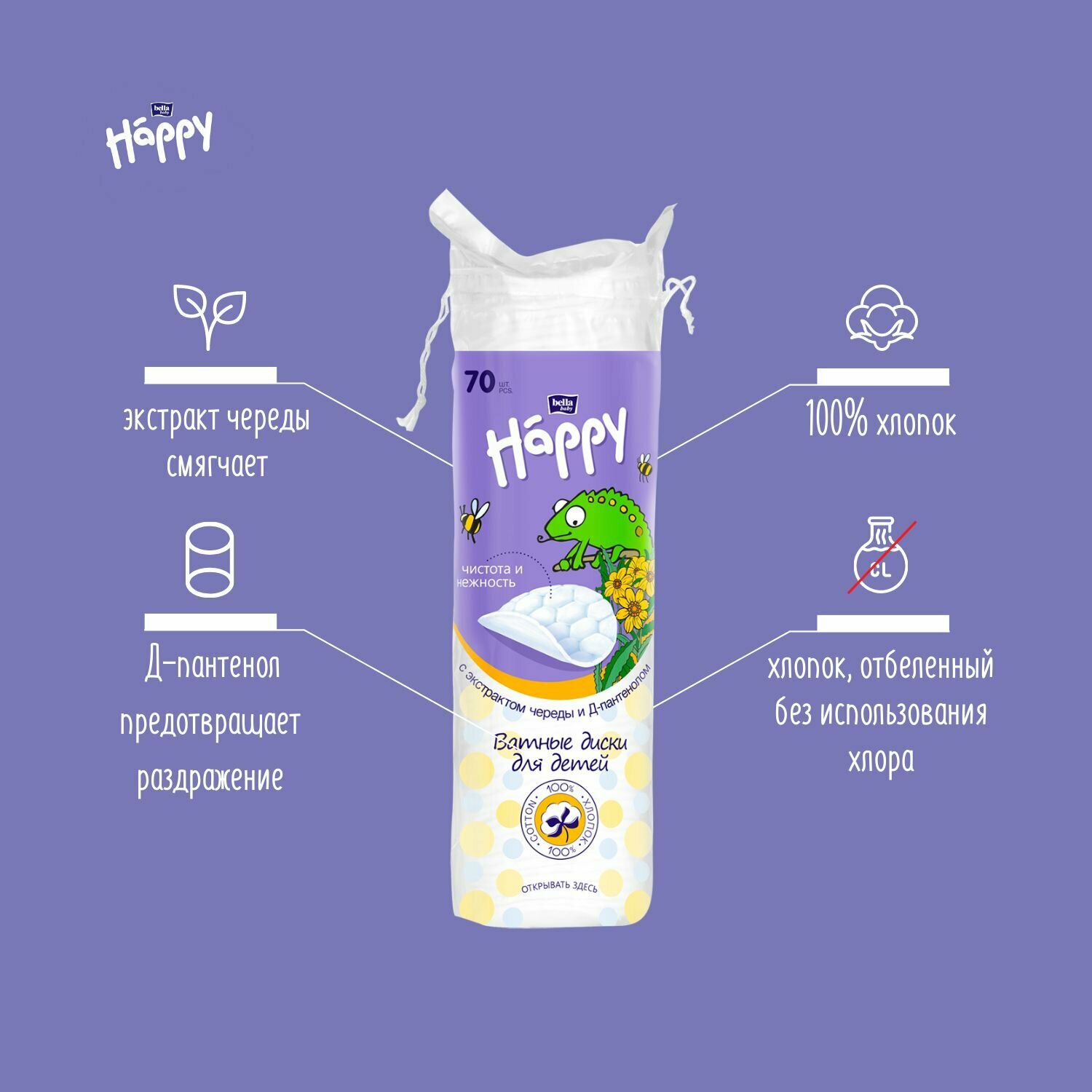 Детские ватные диски Bella Baby Happy с экстрактом череды и Д-пантенолом 70 шт. Other (BB-082-O070-002)