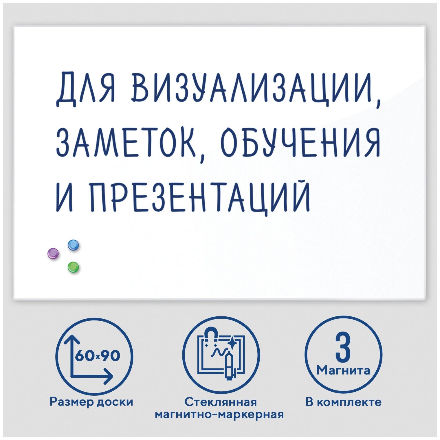 Стеклянная магнитно-маркерная доска BRAUBERG - это современная альтернатива обычным магнитно-маркерным доскам. Позволяет писать маркерами и прикреплять листы.Рабочая поверхность белого цвета изготовлена из небьющегося стекла. Размер доски - 60х90 см. Надежно упакована в защитную пленку и красочную подарочную коробку с ручкой. 3 специальных неодимовых магнита и элементы крепления входят в комплект. Скрытый тип крепления с задней стороны поможет вписать доску в любой интерьер.• Цвет: белый.• Серия: Glass.• Высота доски: 60 см.• Ширина доски: 90 см.• Магнитная поверхность: да.• Тип покрытия доски: маркерное.• Комплектация: магниты, элементы крепления.• Материал рабочей поверхности: стекло.• Вес: 9.167 кг.• Артикул производителя: 236747.
