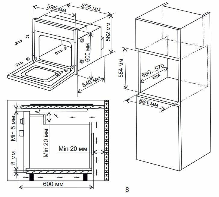Не забудьте о том, что в комплекте поставки вы получите все необходимое для комфортного использования: плоский противень, металлическая решетка и глубокий противень. Встроить данную модель очень легко благодаря стандартным размерам встраивания - 57 см в глубину, 56,4 см в ширину и 58,4 см в высоту.