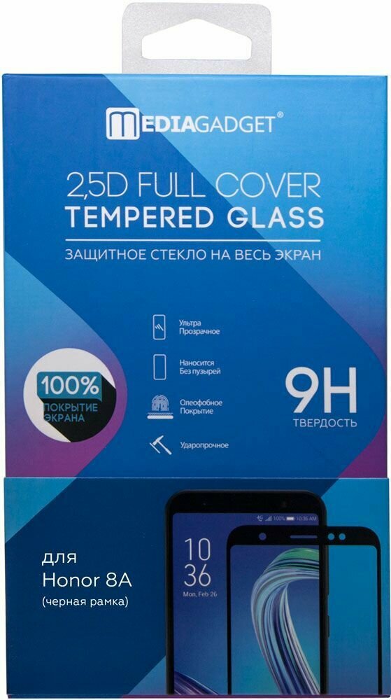 Стекло защитное MediaGadget Honor 8A Full Screen Full Glue черная рамка