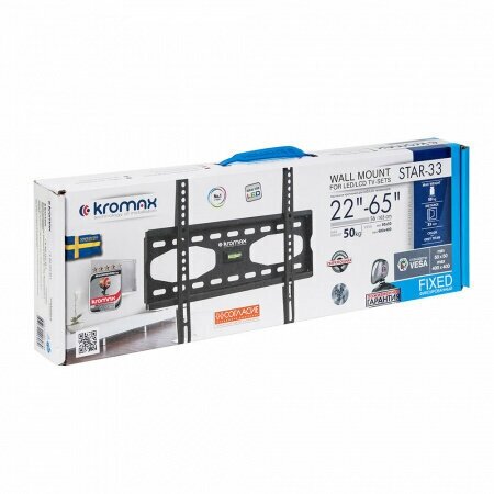 Kromax подходит для техники размером 32-75 дюймов. Благодаря надежной конструкции модель выдержит нагрузку до 50 кг.