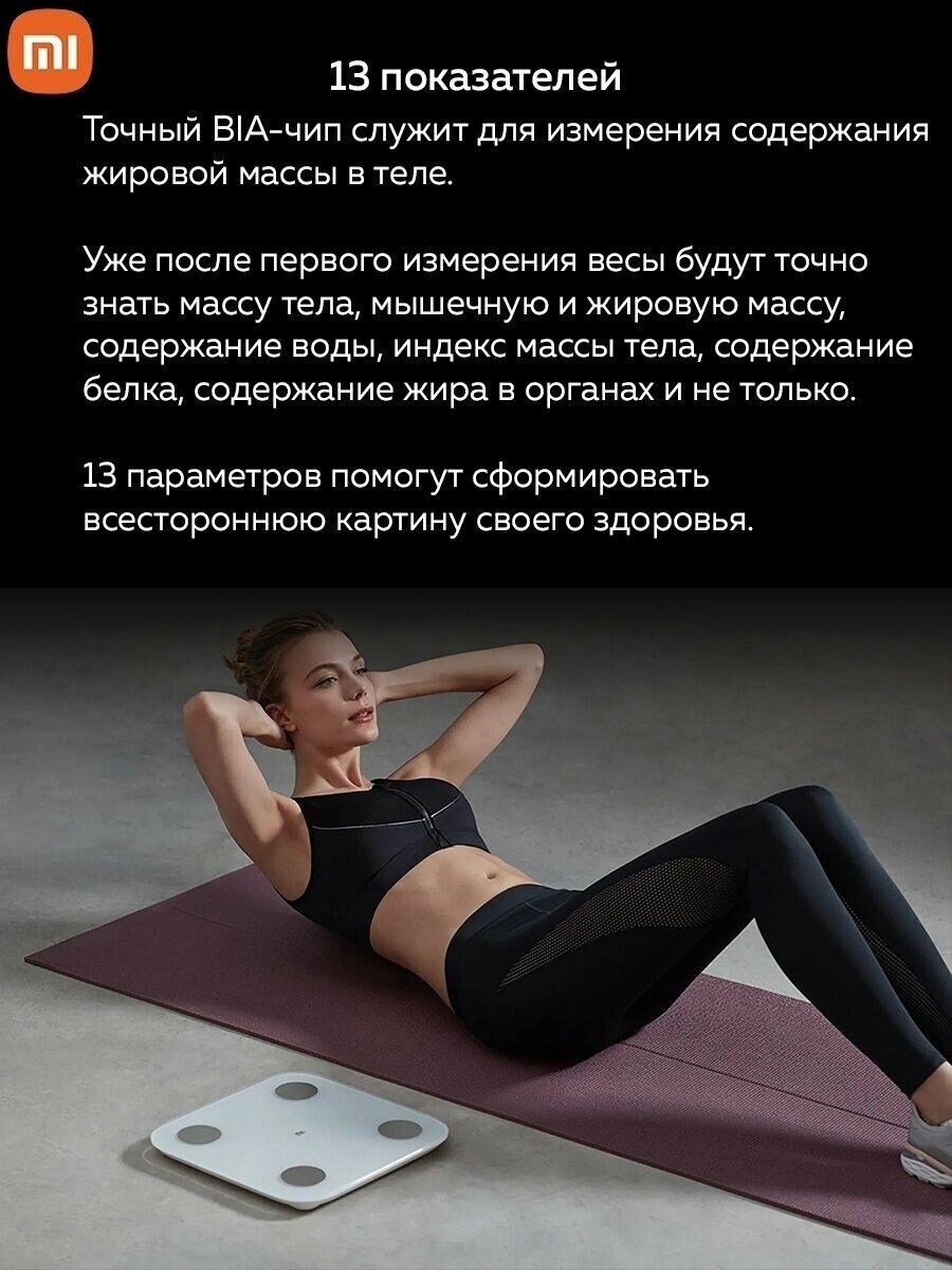 | Дополнительная информация | официальное приложение Mi Fit; оценка состояния вашего тела |