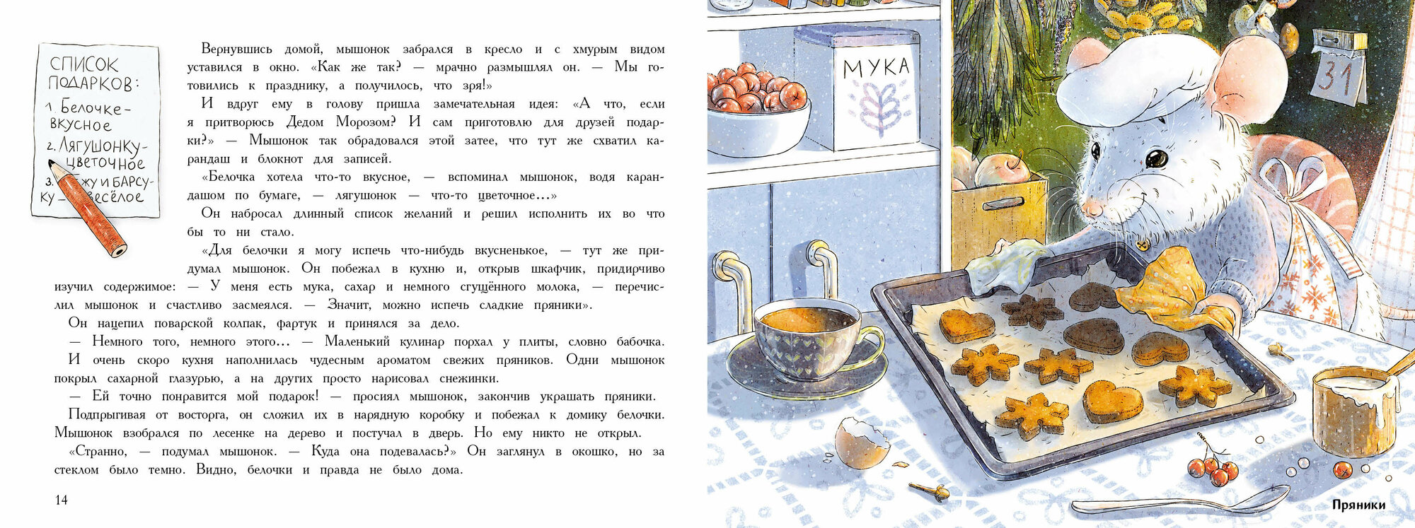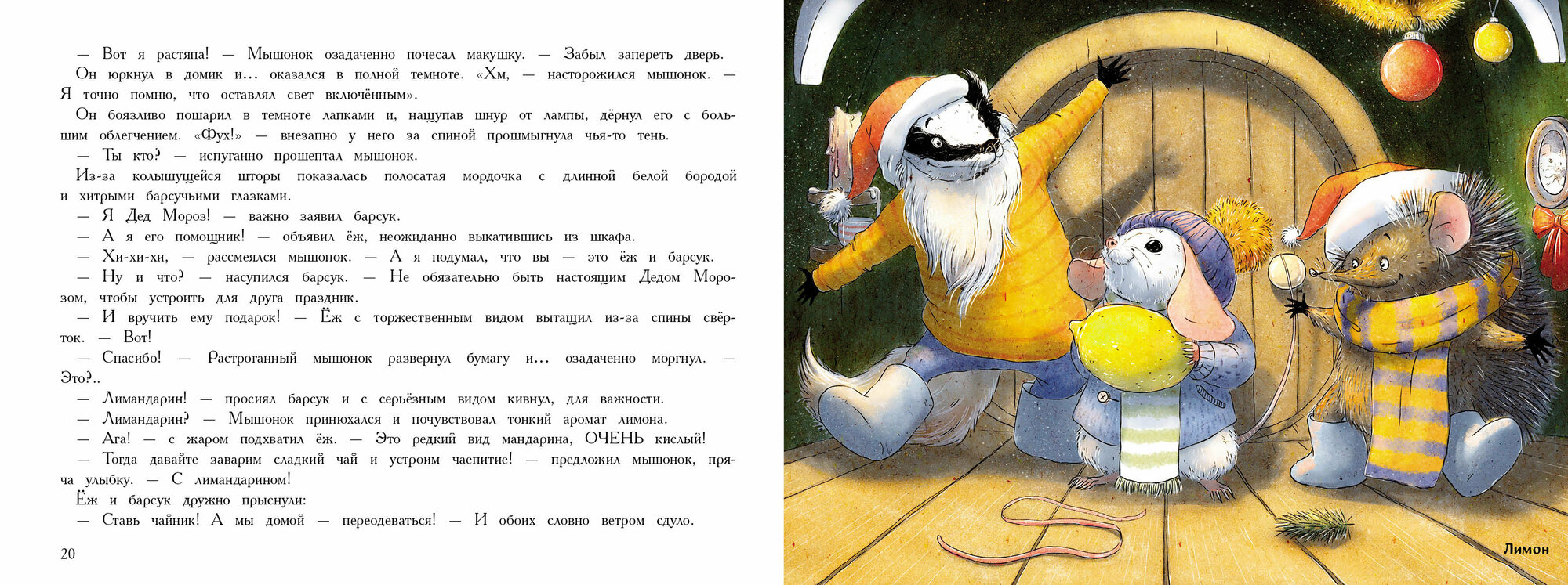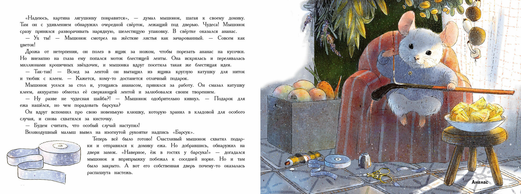 Одна из лучших книг для подарка на Новый год,когда ждешь волшебства.Качество печати на высоте,атмосферные иллюстрации,чудесная история о милом мышонке и огромный жирный плюс - ароматы того о чем читаешь в книге,полнее погружения в книгу уже по моему не бывает! Купили книгу и были в приятном культурном шоке.