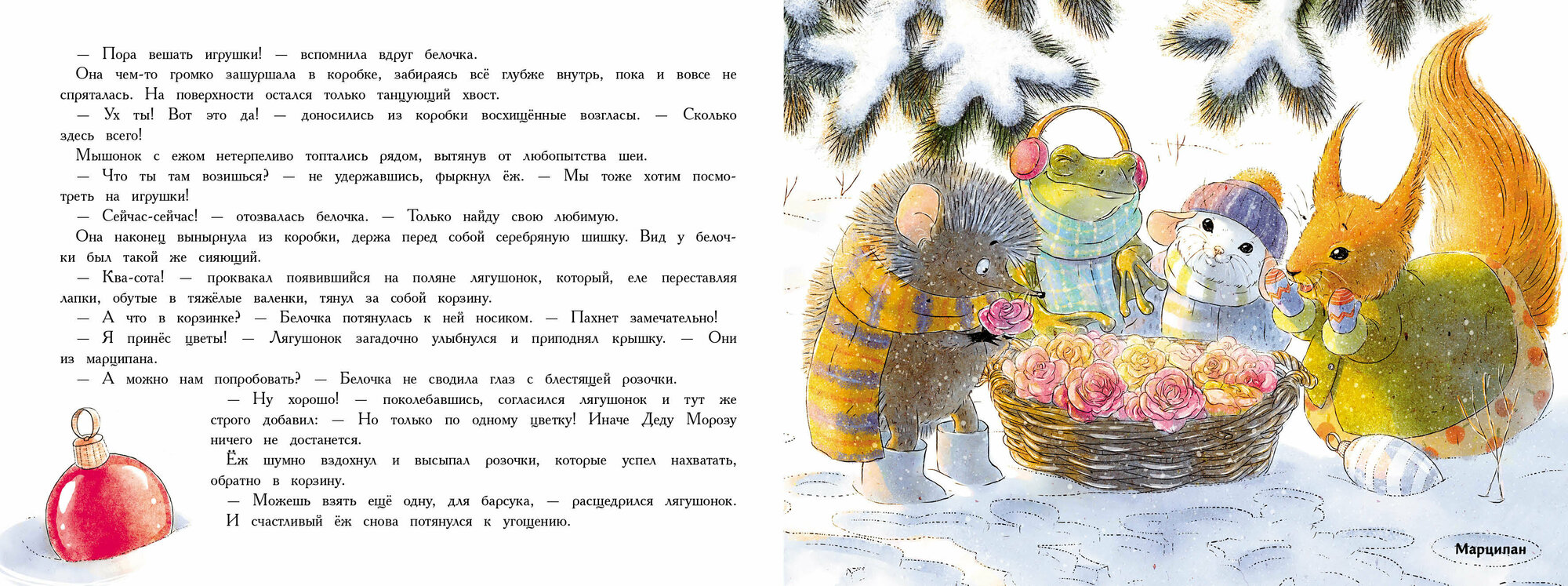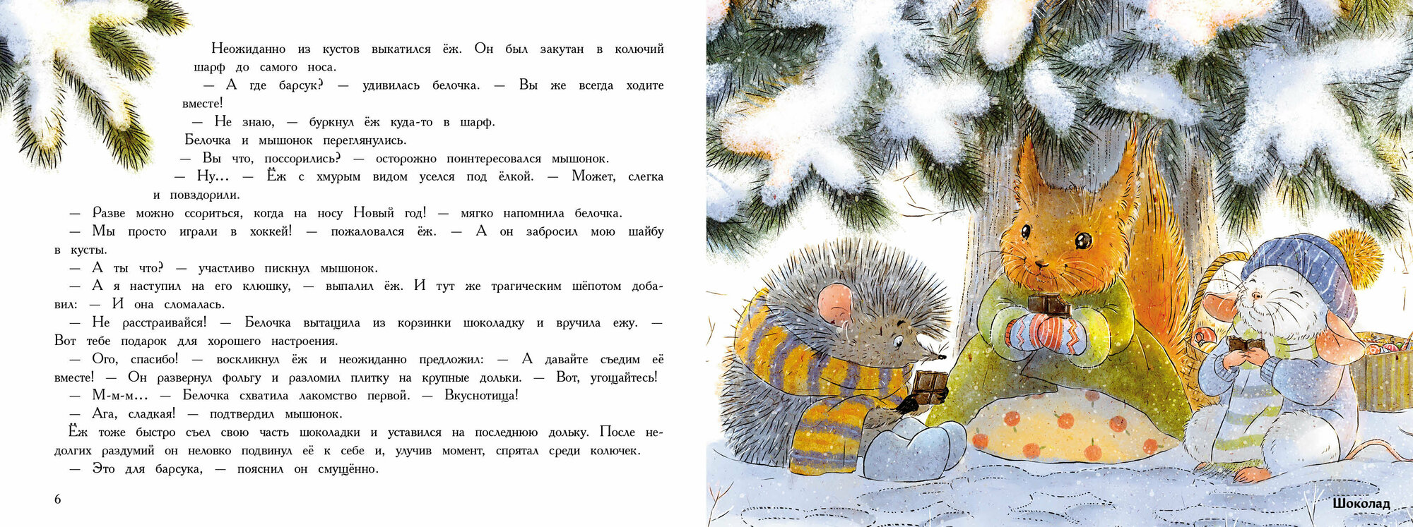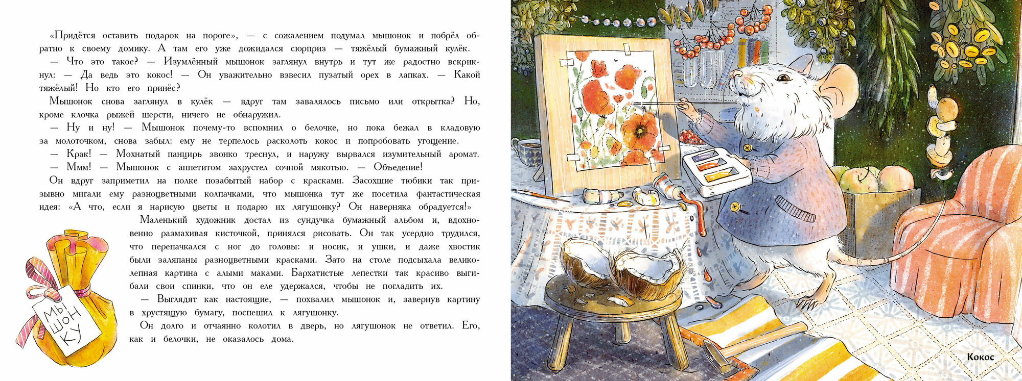 Одна из лучших книг для подарка на Новый год,когда ждешь волшебства.Качество печати на высоте,атмосферные иллюстрации,чудесная история о милом мышонке и огромный жирный плюс - ароматы того о чем читаешь в книге,полнее погружения в книгу уже по моему не бывает! Купили книгу и были в приятном культурном шоке.